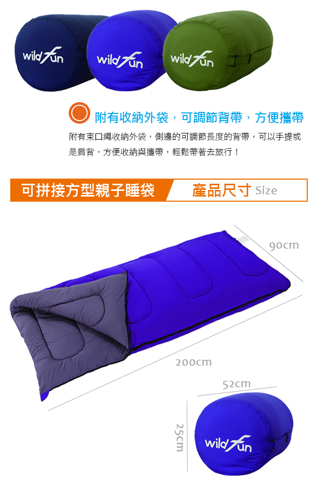 ※ 品名:WildFun 野放可拼接方型親子睡袋※ 型號:CX001